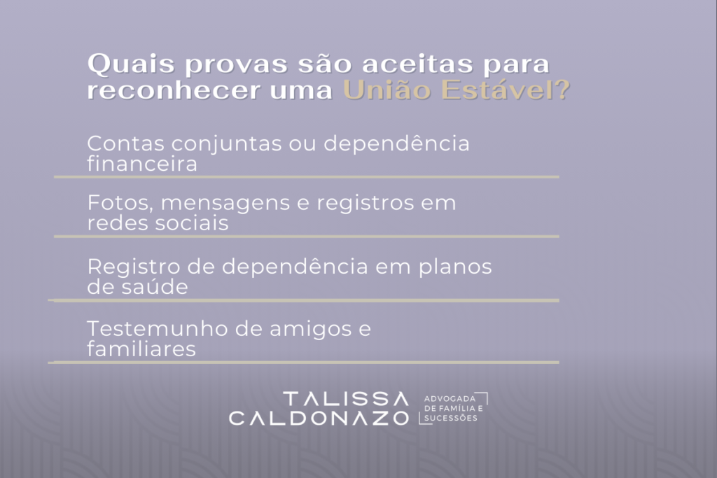 Quais provas são aceitas para o reconhecimento da União Estável?